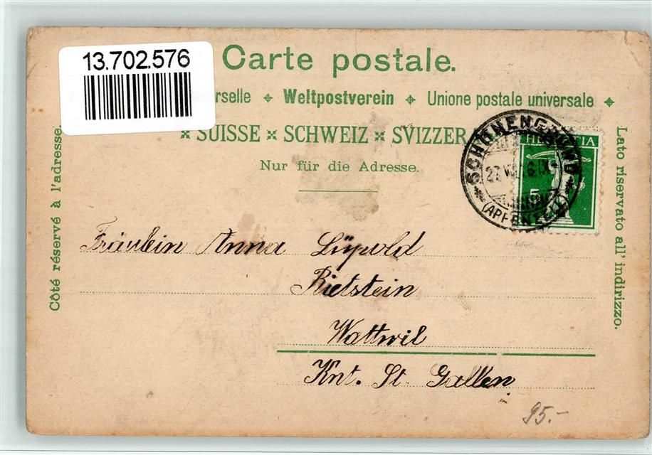 Wald-Schönengrund, Lithographie Villa Gasthaus Zur Krone Bleicherei Schönengrund Gebrauchsspuren, bitte Scan genau beachten!
