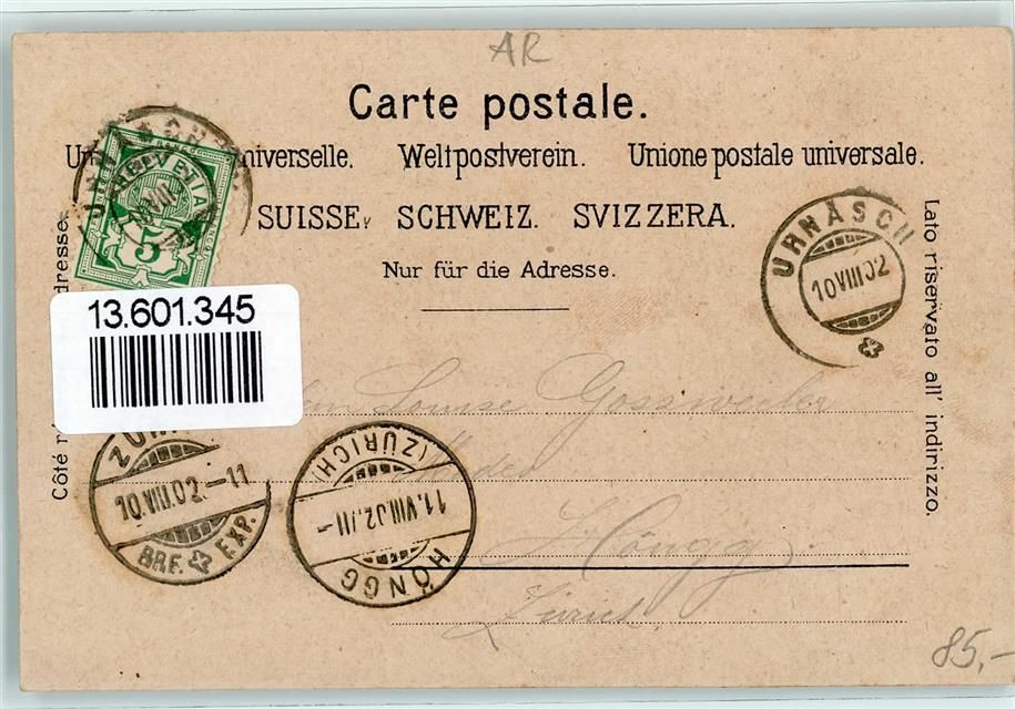 9107 Urnäsch 1902 Lithographie Sennenknabe Kuranstalt Fratérnité Kuranstalt Rossfall