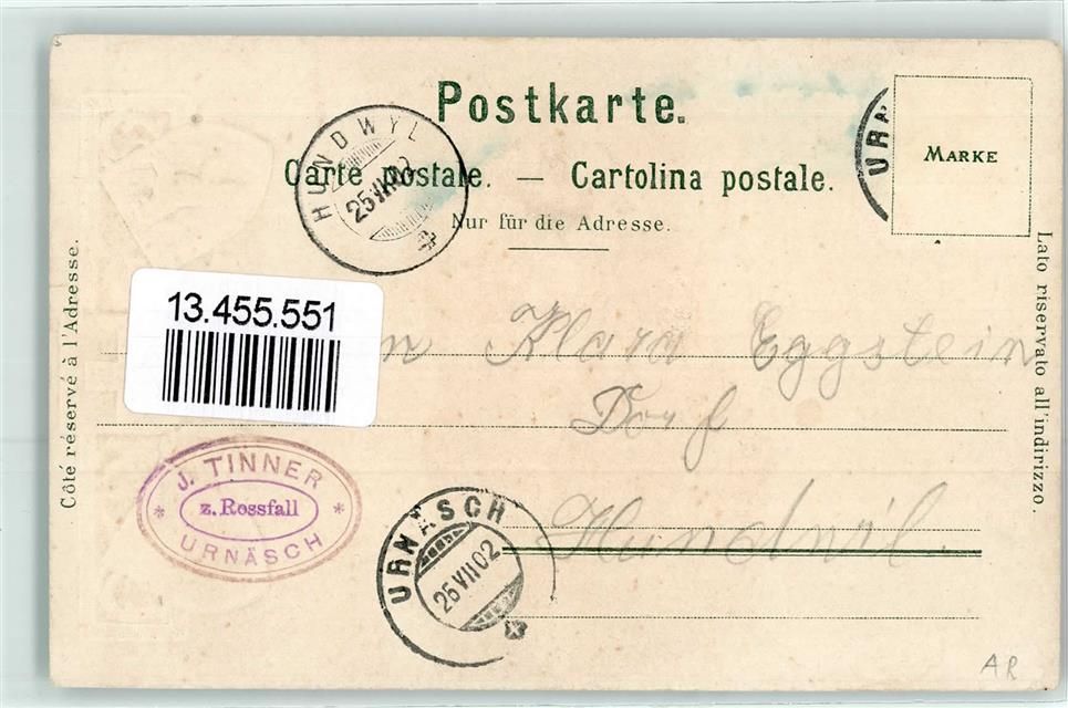 9107 Urnäsch 1902 Prägedruck Wappen Rossfau Lithographie