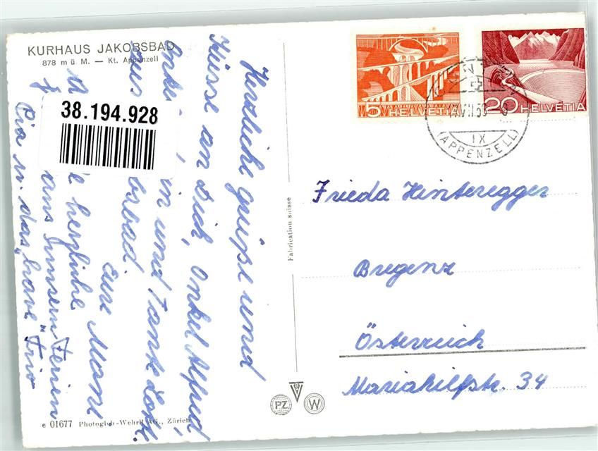 9108 Gonten 1958 Foto AK Hotel Kurhaus Jakobsbad