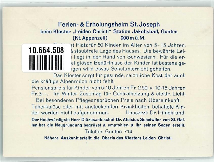 9108 Gonten Werbe AK Ferien- und Erholungsheim St. Joseph