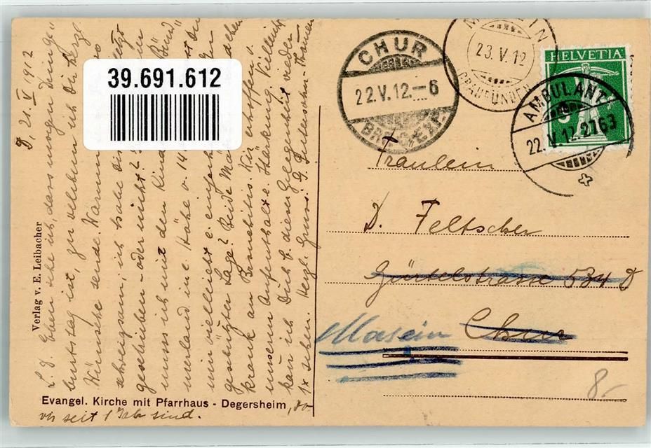 9113 Degersheim 1912 - Ev. Kirche Pfarrhaus
