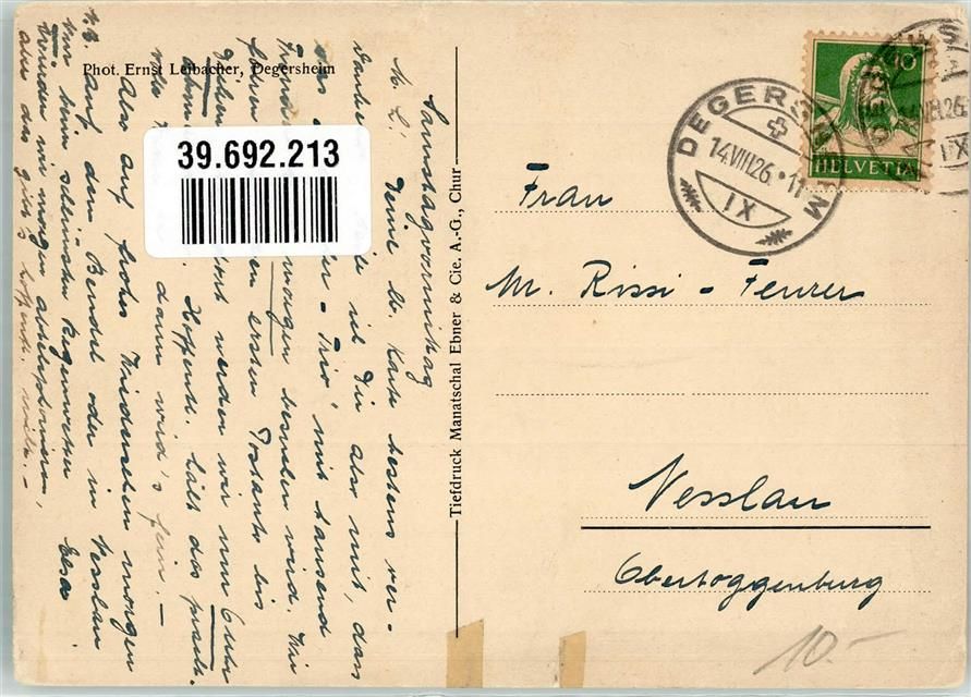 Degersheim, Toggenburger Bauernhaus Foto Leibacher Ort lt. Stempel