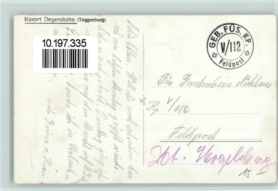 Degersheim, Kurort Degersheim Toggenburg Feldpost Geb. Füs. Kp. V/112