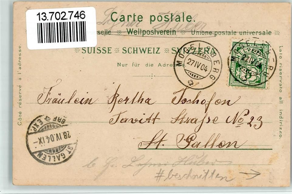 Mogelsberg, Lithographie Schweizer Modes Gasthaus Rössli Post Krone Kirche Pfarrhof Beschnitten Gebrauchsspuren, bitte Scan genau beachten!