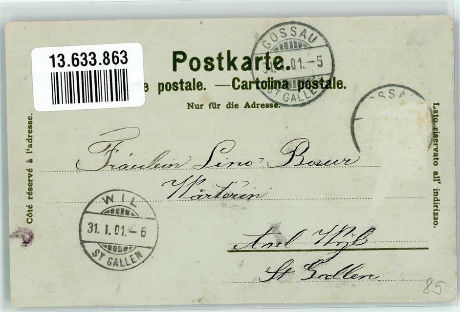 9200 Gossau SG 1901 Gebrauchsspuren Buchdruckerei Gemeindehaus Hotel Bund Lithographie