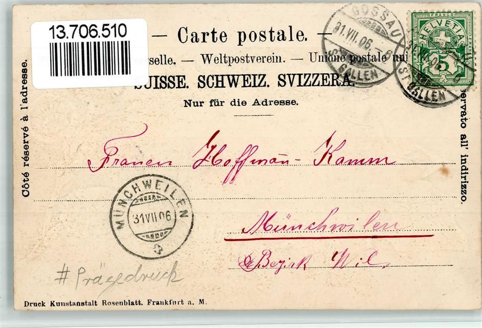 Gossau SG, Lithographie Prägedruck