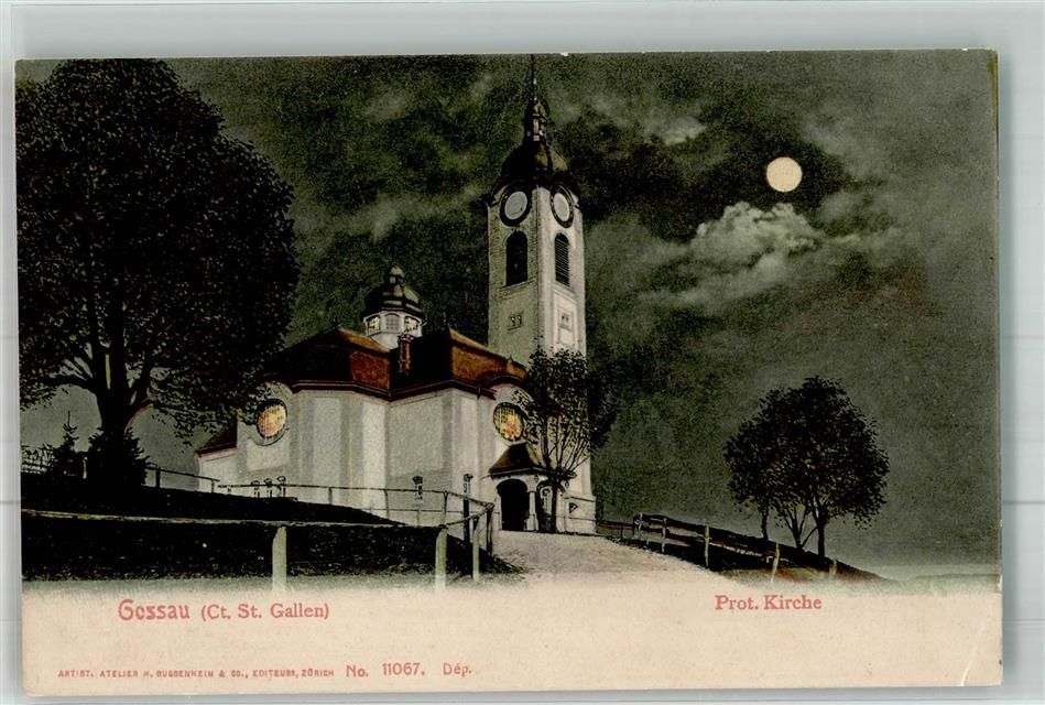 9200 Gossau SG 1908 Gebrauchsspuren Prot- Kirche Mondschein