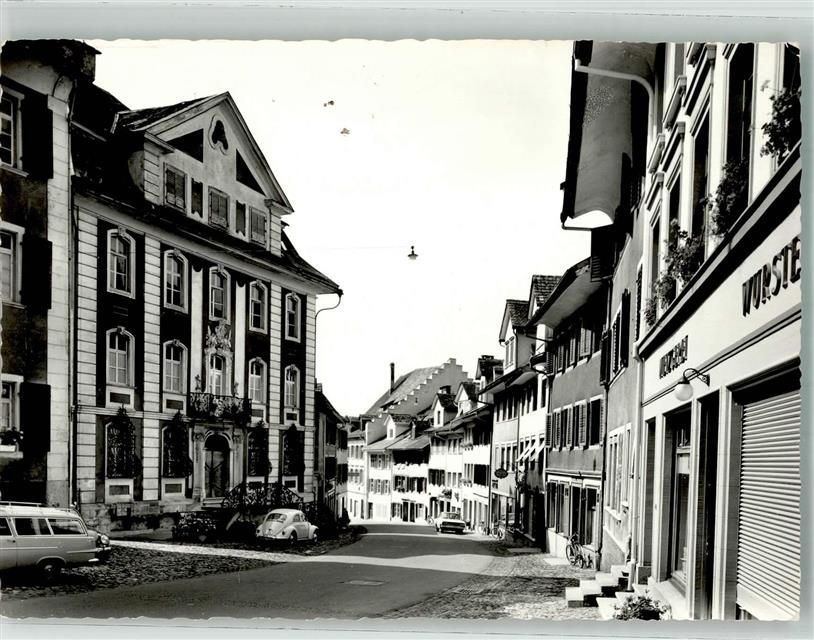 9220 Bischofszell 1971 Foto AK Straße VW Käfer Auto Geschäft