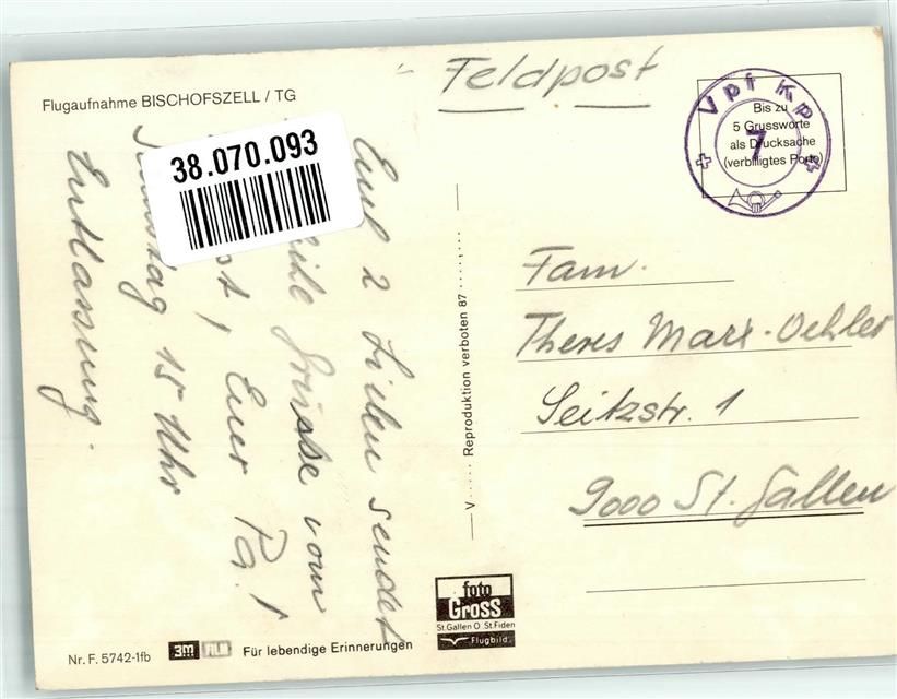 Bischofszell, Fliegeraufnahme Feldpost Vpf Kp 7