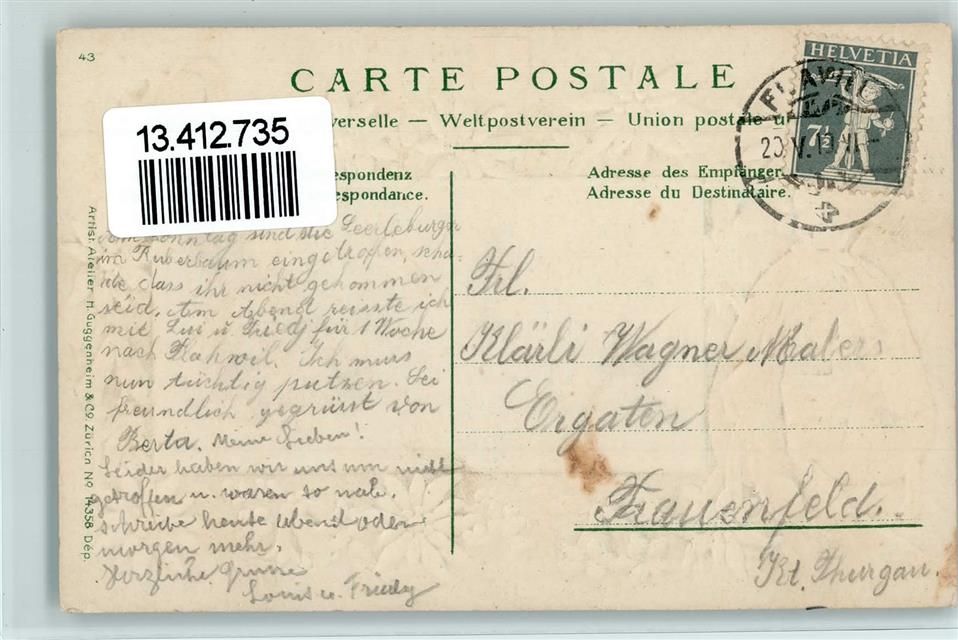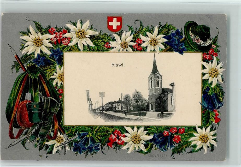 9230 Flawil Lithographie / Prägedruck Passepartout Edelweiss Enzian Rucksack