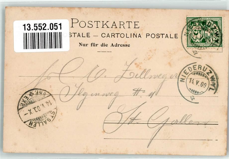 9244 Niederuzwil 1900 Foto AK Kirche Postamt Schule