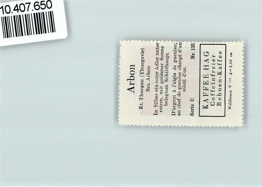 Arbon, Vignette Wappen Kaffee Hag 1920-1940 Adler