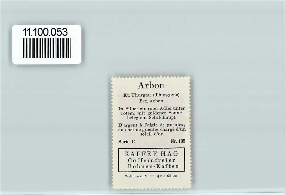 Arbon, Vignette Wappen Kaffee Hag ca 1920-1940
