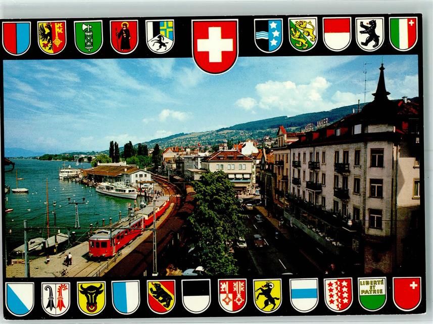 Rorschach, Hafenbahnhof mit Hotel Anker Rorschach-Heiden-Bergbahn Ausflugsschiff Auto