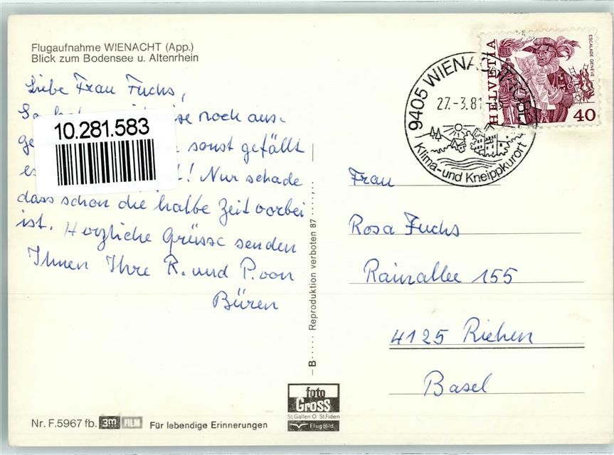 9405 Wienacht-Tobel 1981 - Flugaufnahme Blick zum Bodensee und Altenrhein Winter