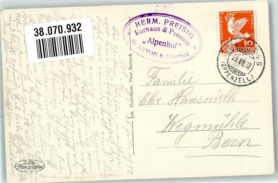 9413 Oberegg 1932 Foto AK