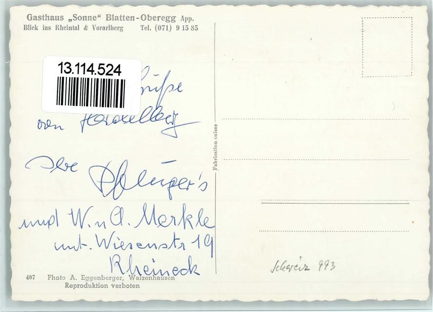 9413 Oberegg - Gasthaus Sonne Blick ins Rheintal und Vorarlberg
