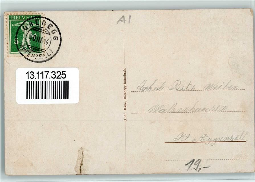 9413 Oberegg Gebrauchsspuren 1914 Gasthaus Pension Rössli