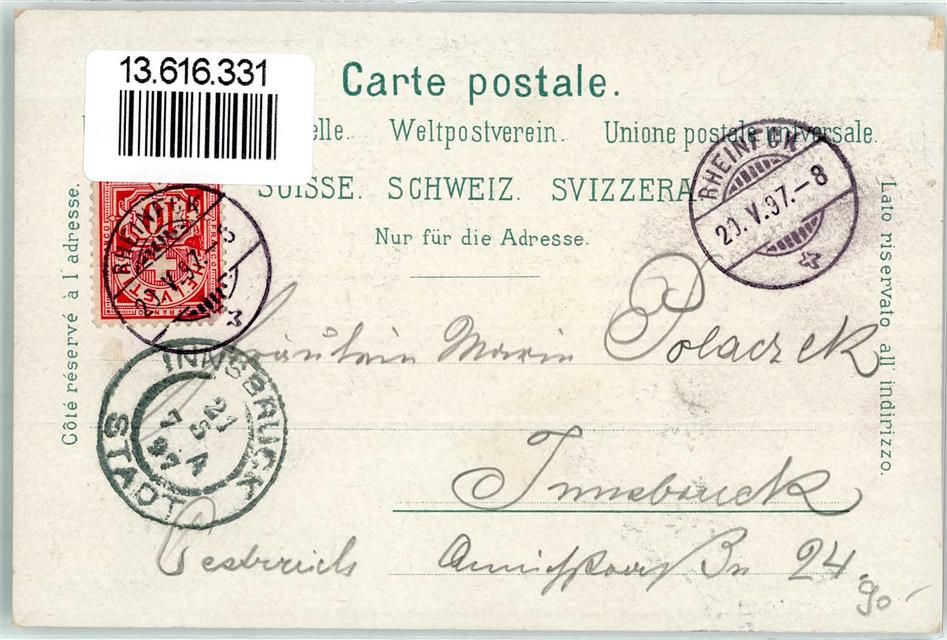 9424 Rheineck 1897 Lithographie Drahtseilbahn Schloss des Fürsten v. Hohenzollern