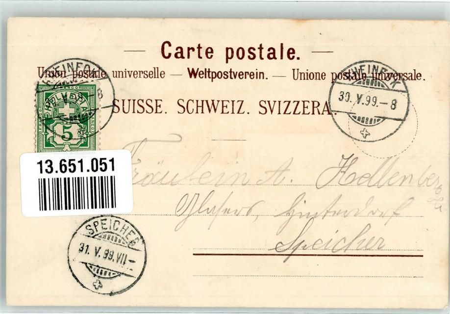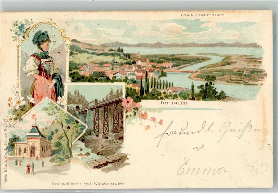 9424 Rheineck 1899 Lithographie Drahtseilbahn nach Walzenhausen Tracht Gebr. Künzli Dep. Nr. 387