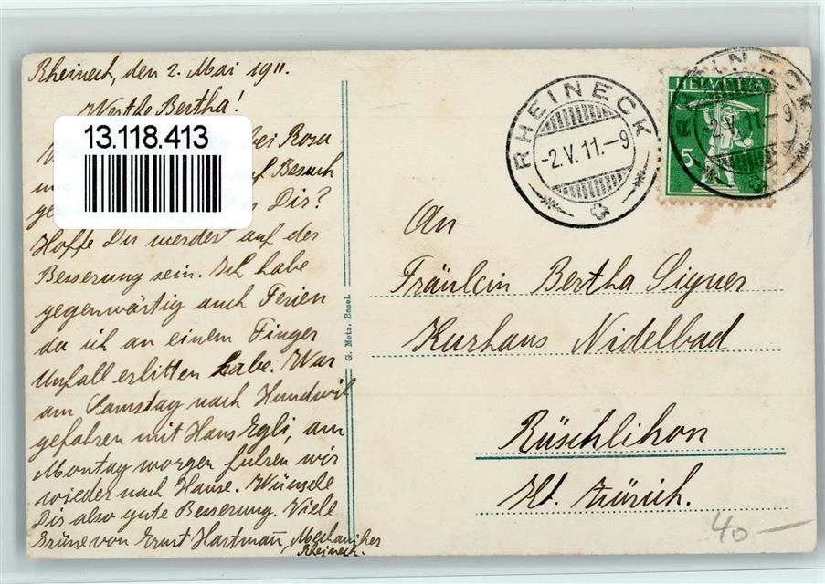 9424 Rheineck - 1911 Schloss Weinburg bei Rheineck-Tal Partie bei Kirche Drahtseilbahn