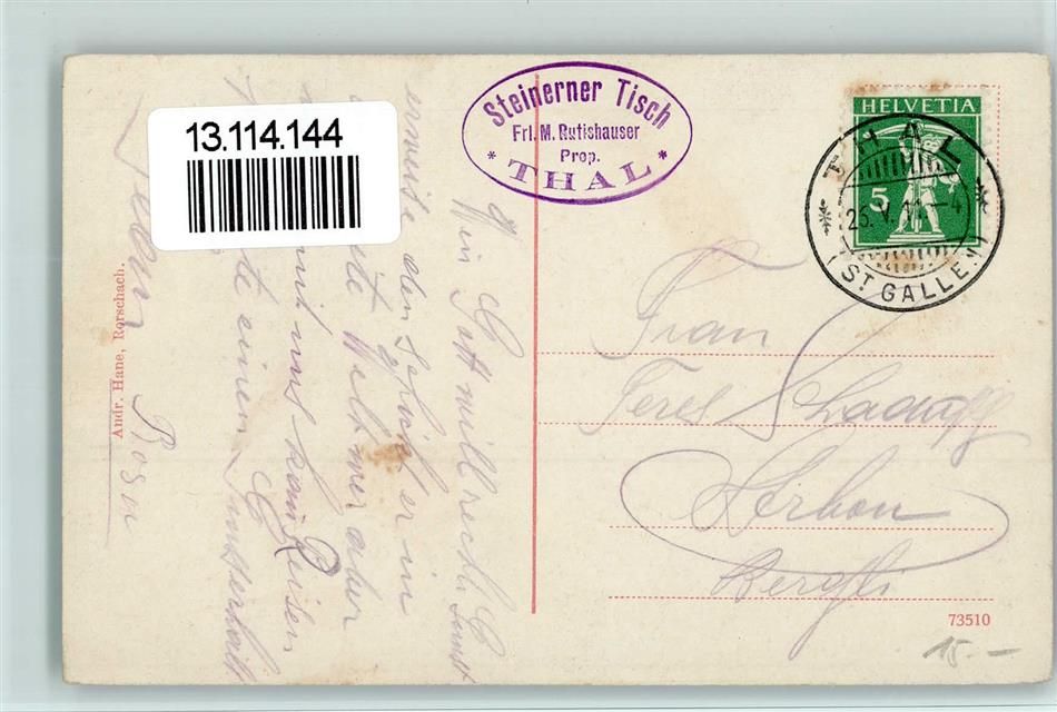 Thal, 1911 Steinerner Tisch mit Rheineck Vorarlberge Walzenhausen Hüttenstempel