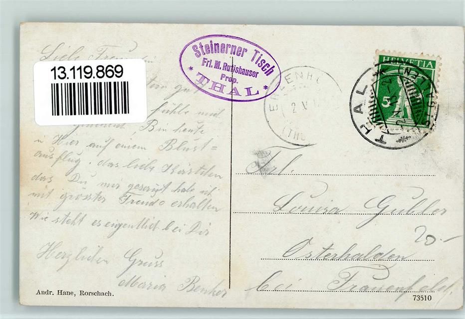 9425 Thal Gebrauchsspuren 1913 Steinerner Tisch Rheineck Vorarlberge Walzenhausen