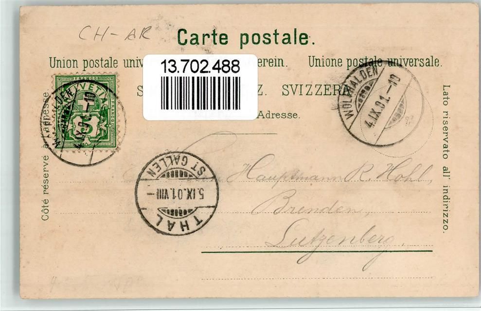 Wolfhalden, Lithographie Gasthaus Zur Krone Zum Löwen Zum Adler Zur Friedberg Pension Friedheim