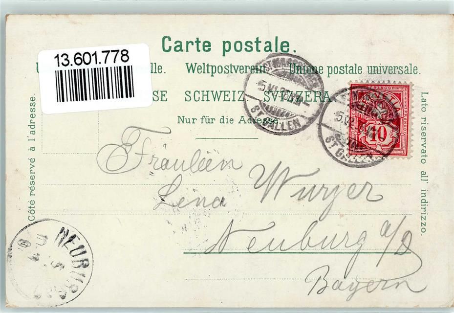 9428 Walzenhausen 1896 Lithographie Rheinburg Kirche