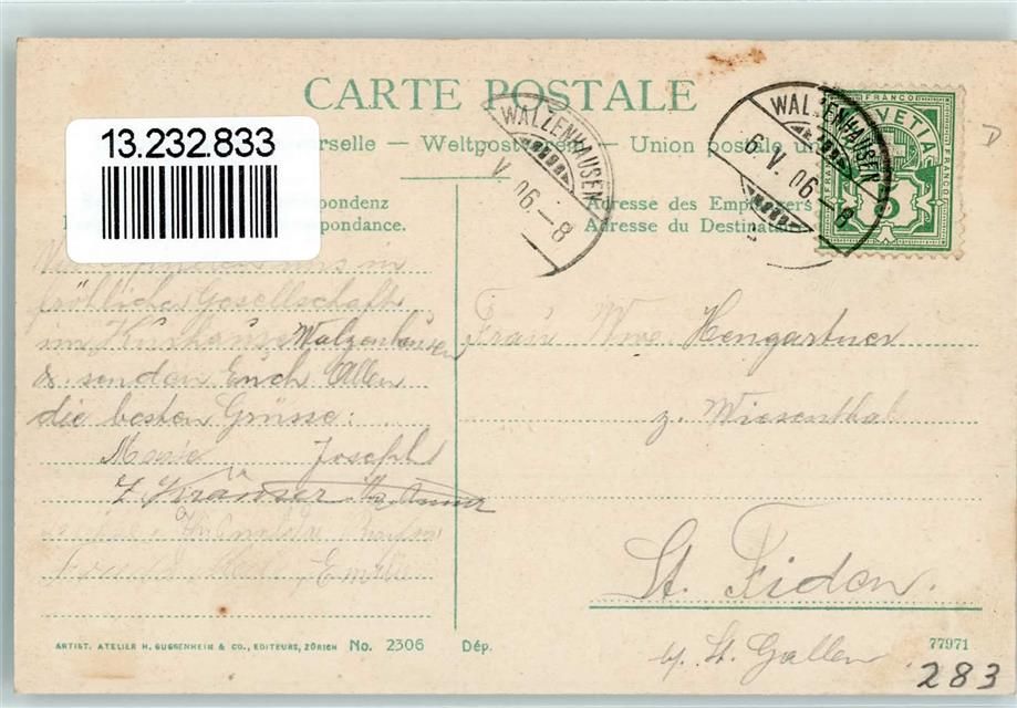9428 Walzenhausen 1906 - Hotel Pension Kuraus