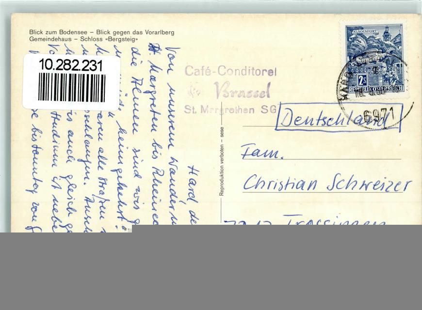 St. Margrethen SG, Blick zum Bodensee Blick gegen das Vorarlberg Gemeindehaus Schloss Bergsteig Oldtimer