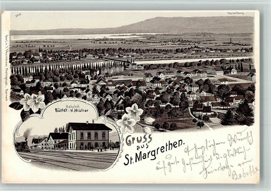 St. Margrethen SG, Bahnhof Dampflok Lithographie