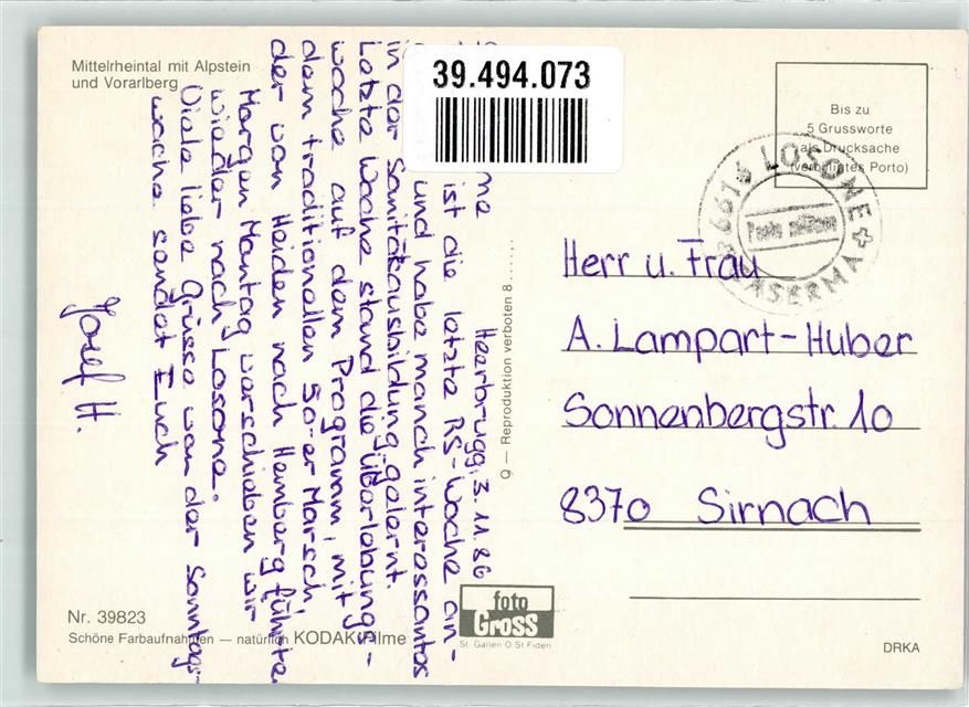 9436 Balgach - Heerbruck Widnau Berneck-Au Rheintal Alpstein Vorarlberg