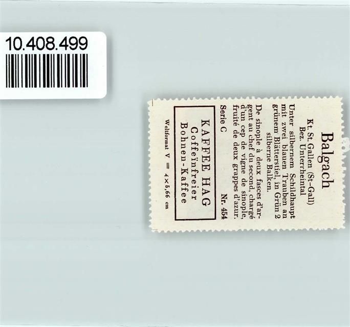 Balgach, Vignette Wappen Kaffee Hag ca 1920-1940