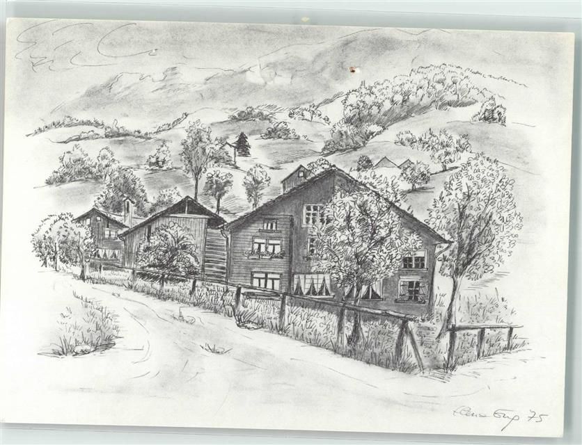 9468 Sax Künstlerkarte Holzhäuser sign. E. Eng-Gambazzi