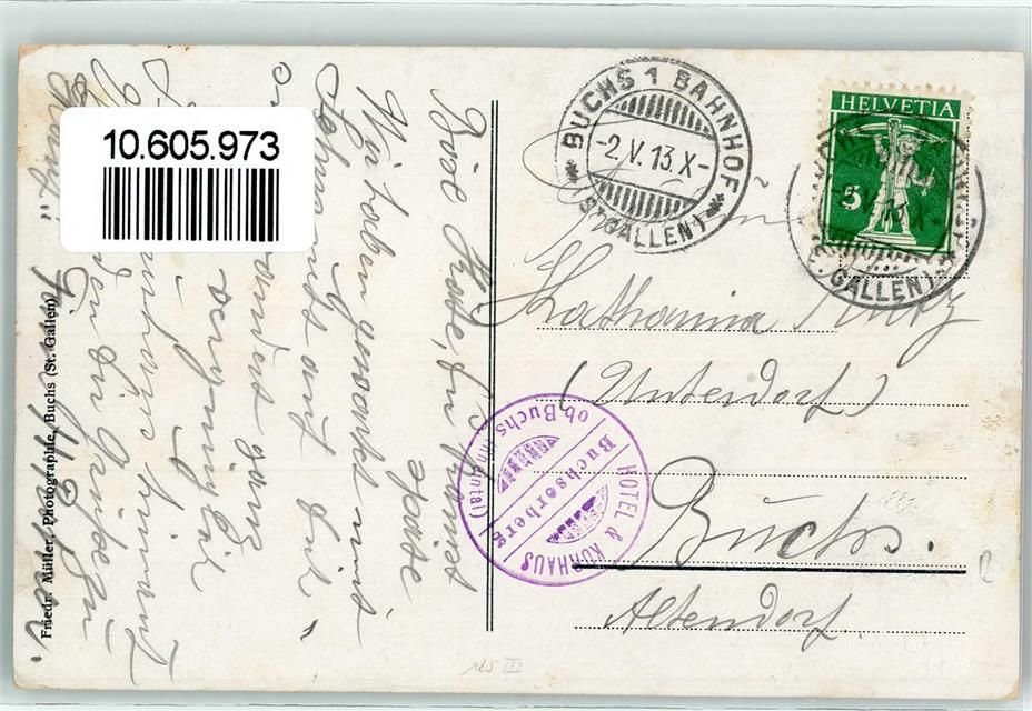 9470 Buchs SG 1913 Gebrauchsspuren Hotel Kurhaus Buchserberg Alpstein