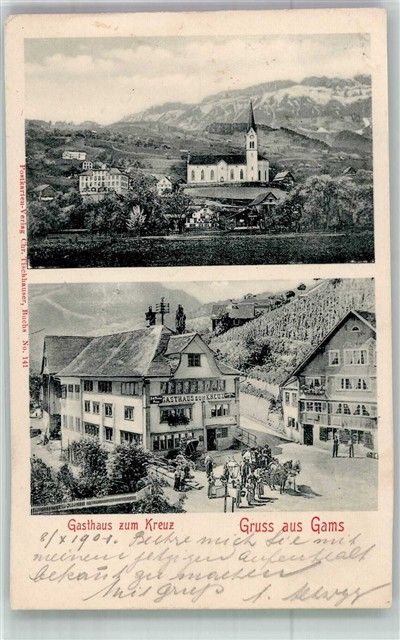 9473 Gams 1901 Foto AK Gasthaus zum Kreuz Kirche