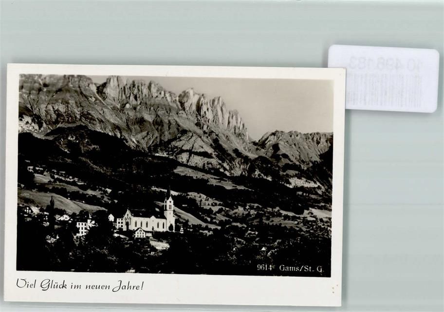 Gams, Foto 10cm x 7cm Fliegeraufnahme Kirche Neujahrswünsche