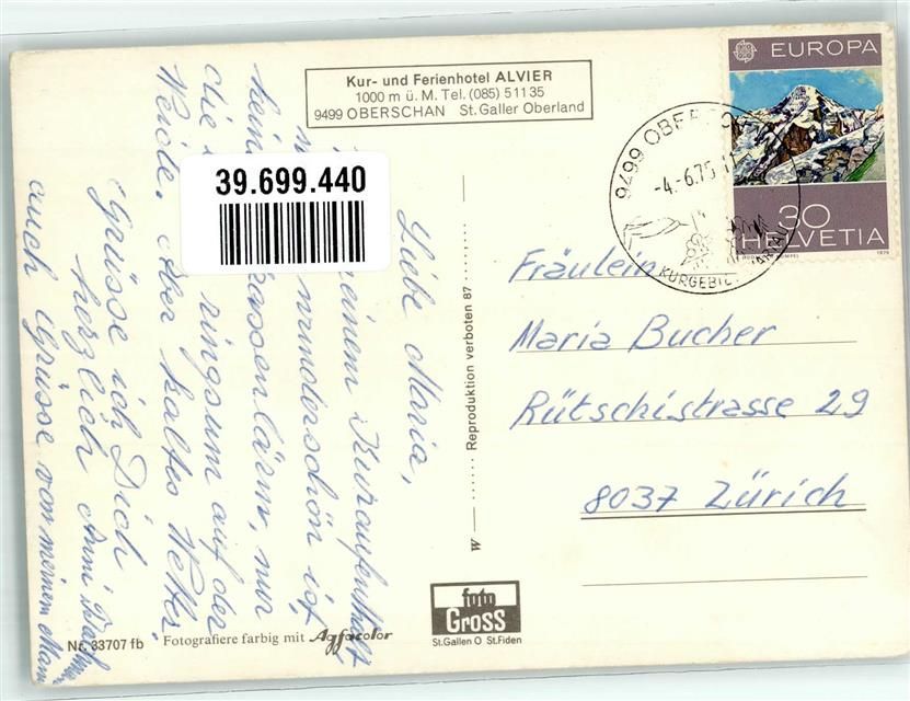 9479 Oberschan Foto AK Hotel Alvier Foto Gross