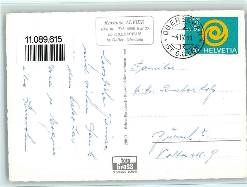 9479 Oberschan - Kurhaus und Kinderheim Alvier ob Oberschan Wappen