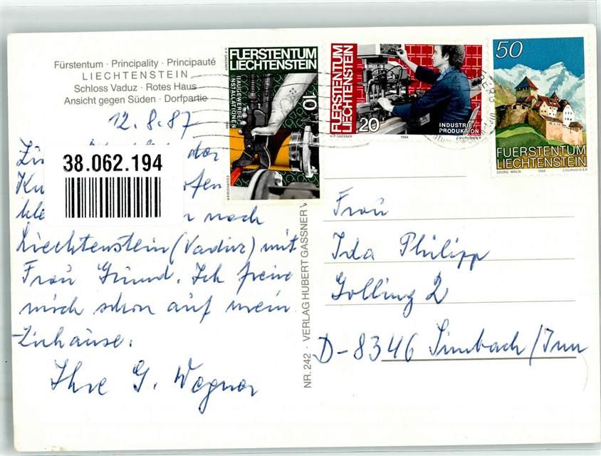 9490 Vaduz 1987 Foto AK Schloss Wappen Rotes Haus Dorfpartie