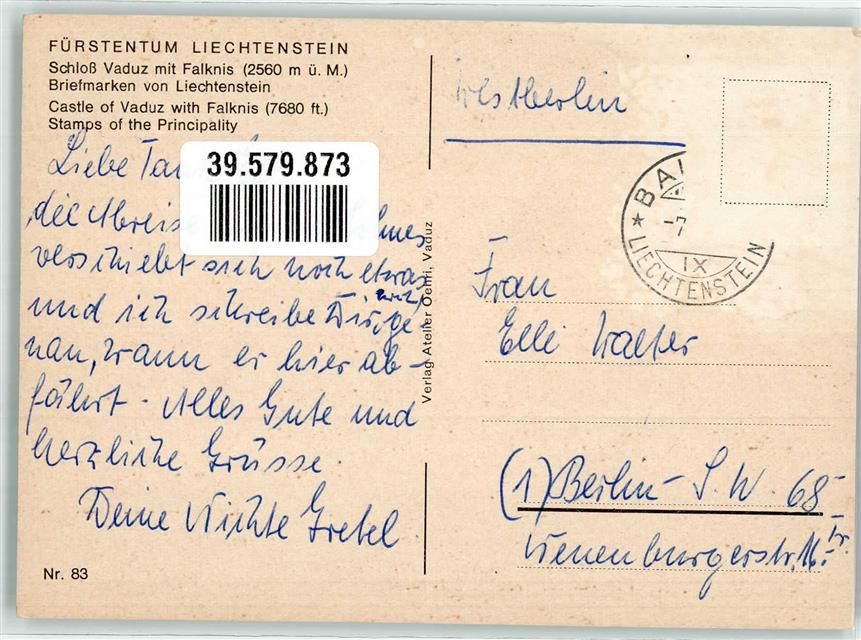 9490 Vaduz - Briefmaken Fürst Franz Josef II. Fürstin Gina Schloss