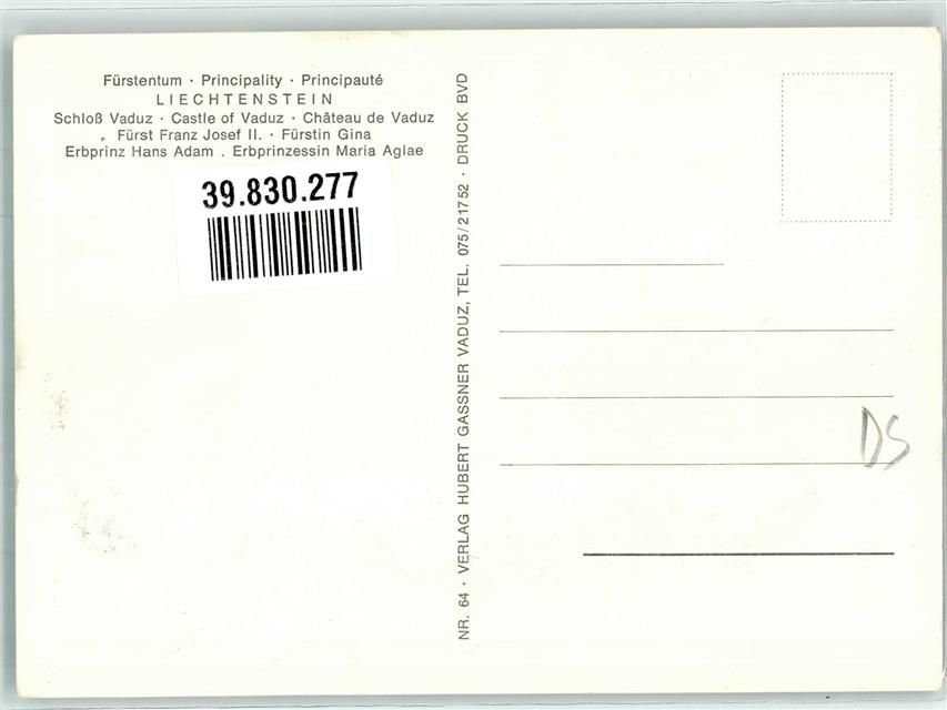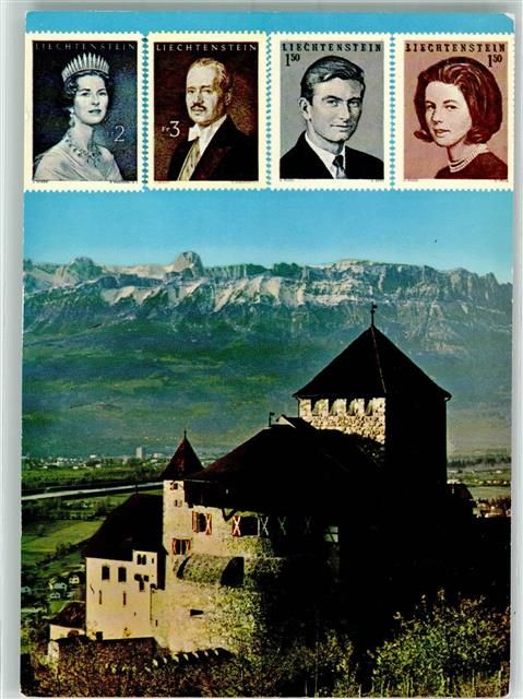 9490 Vaduz Foto AK Schloss Portrait Fürst Franz Josef II. Fürstin Gina Erbprinz Hans Adam Erbprinesssin Maria Aglee