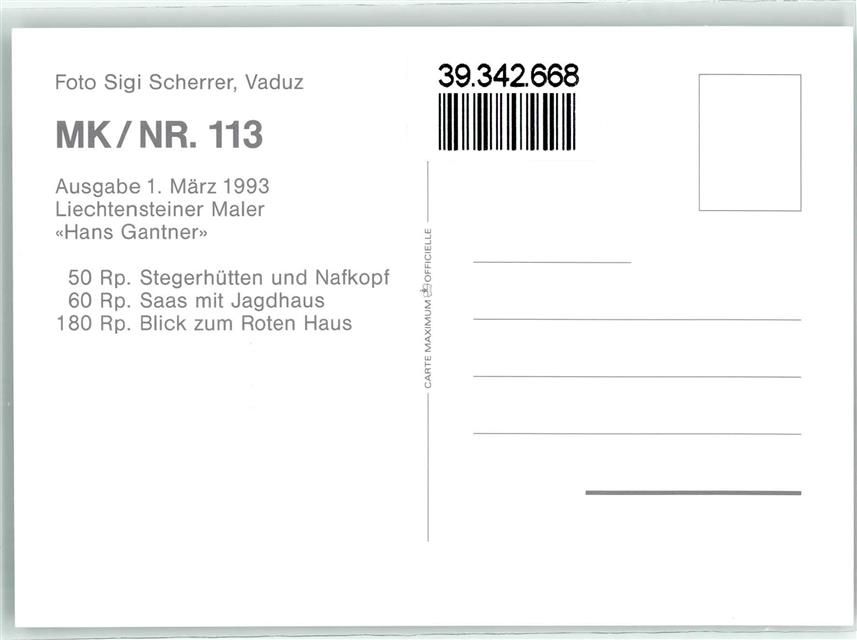 Schaan, Maler Hans Gantner Stegerhütten Nafkopf Saas Jagdhaus Rotes Haus Ort lt. Stempel