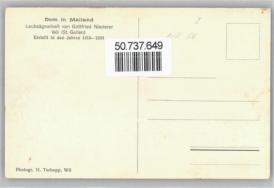 Wil SG, Dom in Mailand, Laubsägearbeit von Gottfried Niederer