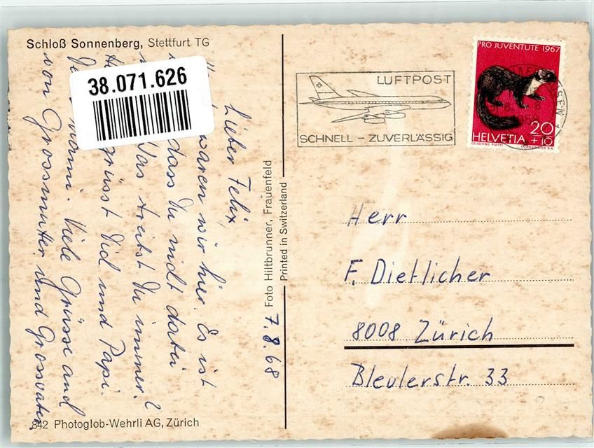 Stettfurt, Schloss Sonnenberg Stempel Luftpost