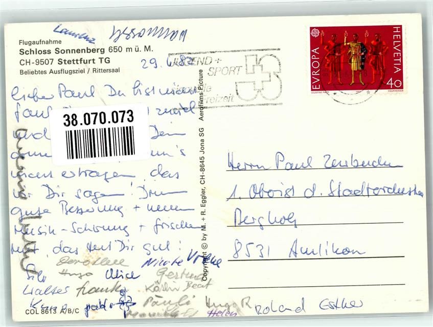9507 Stettfurt Foto AK Fliegeraufnahme Schloss Sonnenberg