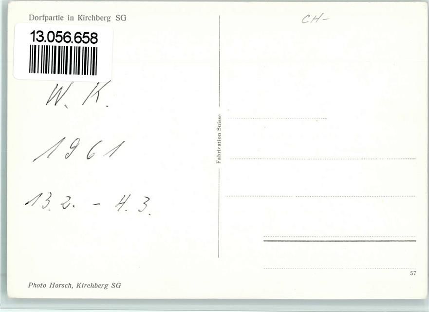 9533 Hof Kirchberg SG 1961 Foto AK Dorfpartie , sehr gute Erhaltung AK
