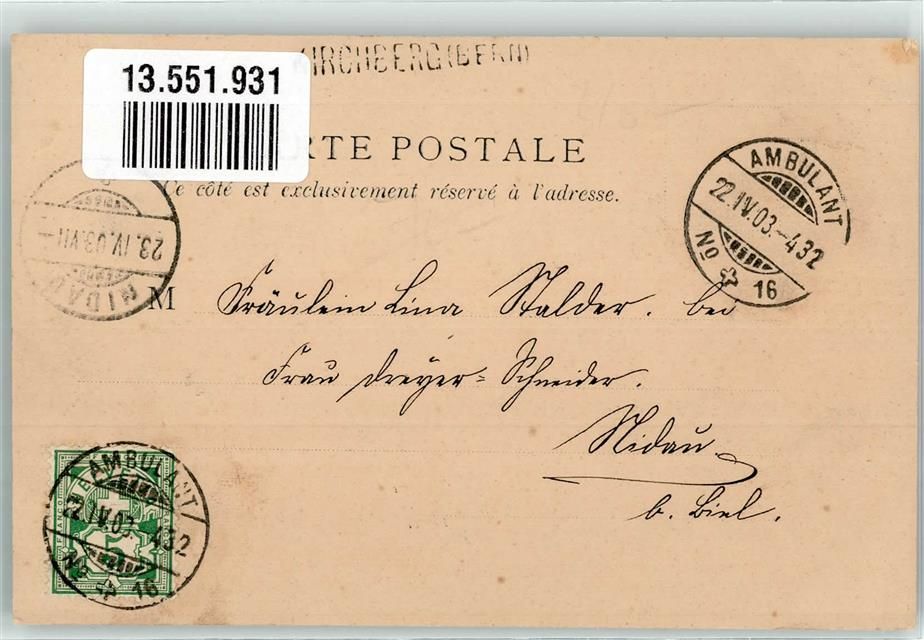 Kirchberg SG, Bahnpost Zug 432 Nr. 16